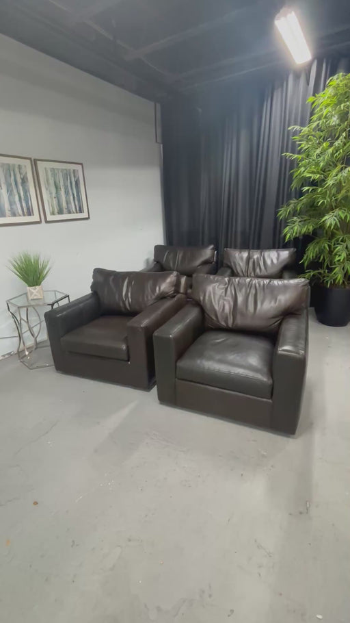 View full detailsBrown Leather Swivel Chairs from Crate & Barrel
