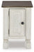 What a fresh interpretation of country classic style. Inspired by American farmhouse craftsmanship, but with an elevated sensibility, this chairside end table blends distinctive details such as turned post accents and raised door fronts for a substantial look that feels right at home. Those who appreciate rustic character should take note of the table’s thick crown moulding, beautified with a vintage two-tone finish. A small flip lid located on the top conceals a power outlet and USB ports to keep electronics charged up and close at hand